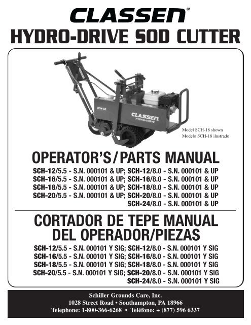 Sod Cutter - SN. Operator and Parts Manuals for Classen turf renovation equipment are available as pdfs. 8 CLASSEN SOD CUTTER HYDRO-DRIVE POWER TRAIN ASSEMBLY KEY PART NO.